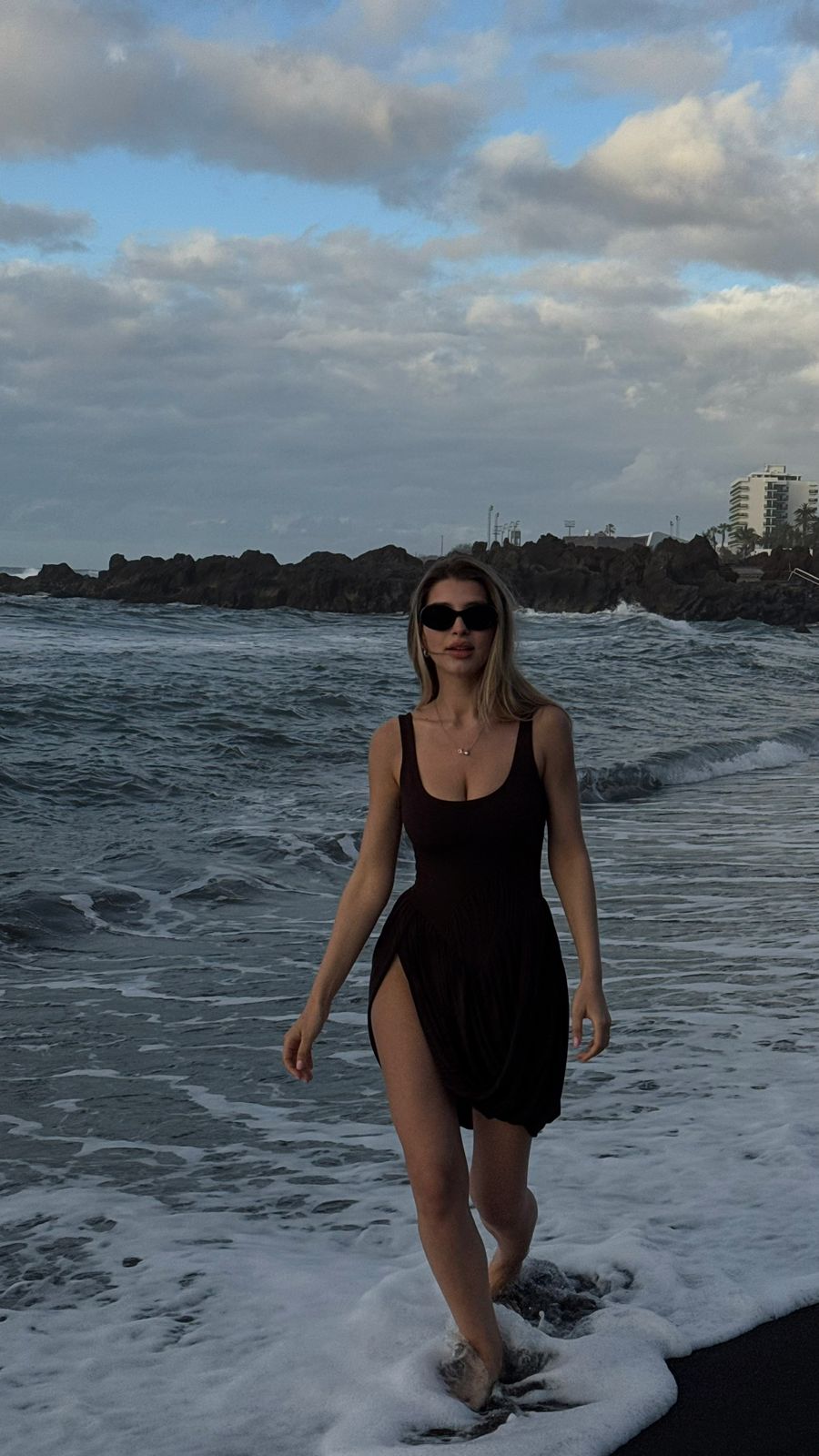 A dress designed for bold and sophisticated looks. The sleek bodice with a soft neckline seamlessly flows into striking side draping, creating an illusion of movement while accentuating the hips. Deep slits add a touch of daring, while the delicate fabric gently hugs the silhouette, following every curve. Light, flowing, and captivating — this dress is for those who love to be in the spotlight and aren’t afraid to shine.