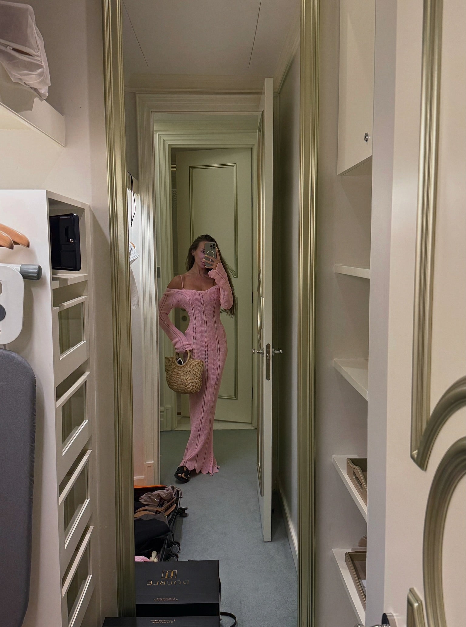 This elegant black dress features a contoured silhouette with strategically placed sheer panels that add a touch of allure. Ideal for sophisticated evening events.